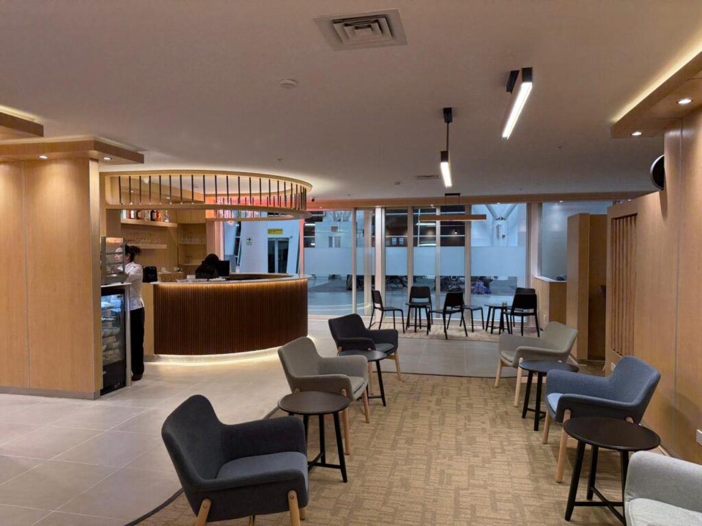 El salón cuenta con un diseño elegante y moderno que le invita a relajarse desde el momento en que cruza la puerta. Con capacidad para 30 comensales, el espacio es íntimo pero diáfano, y cuenta con luz natural que te conecta con el bello entorno de Arica incluso mientras esperas tu vuelo..